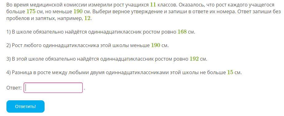 Так как здесь фигурируют цифры 175 и 190, я выбрала 4 утверждение.