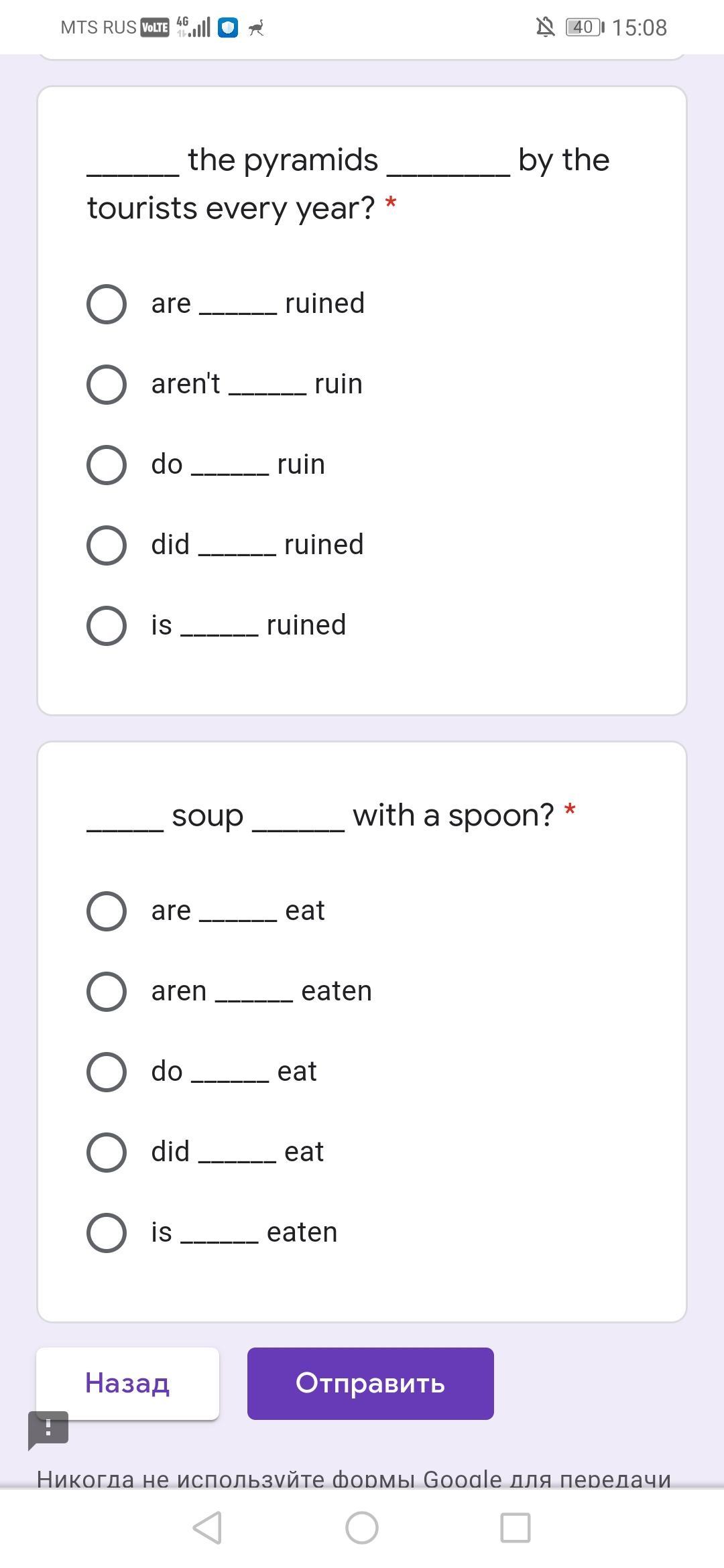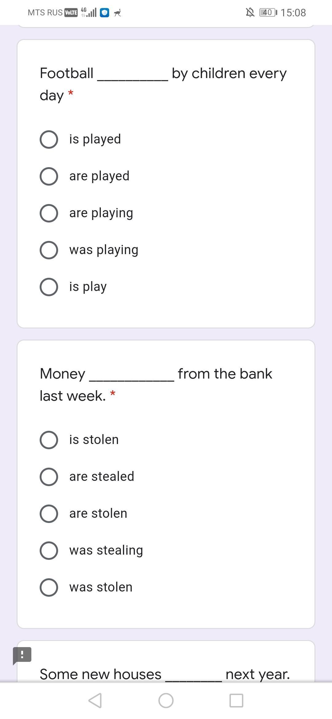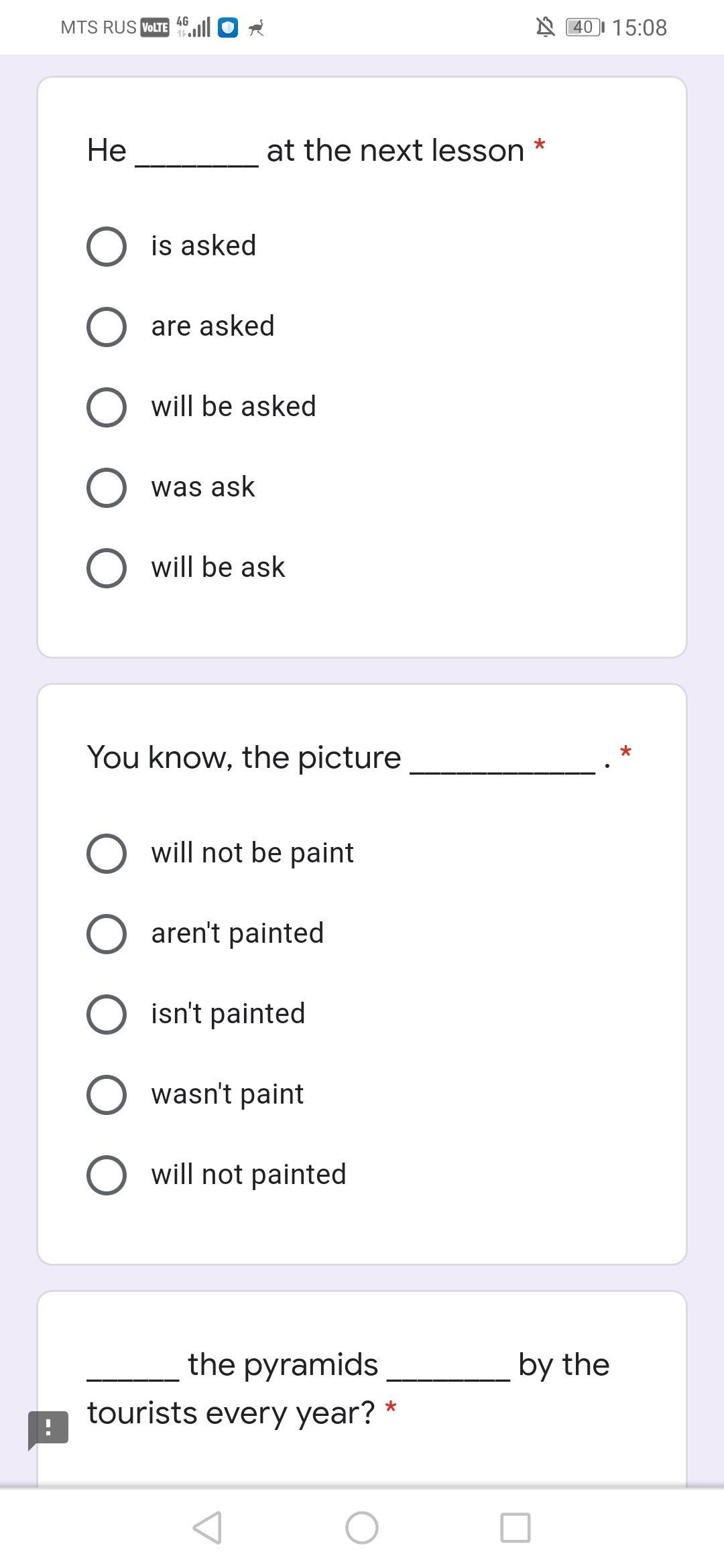 1)will be asked 2) will not painted 3)What-was 4)are plaing 5)are stolen6)will7)was done8)was10)do ruin11)do eat