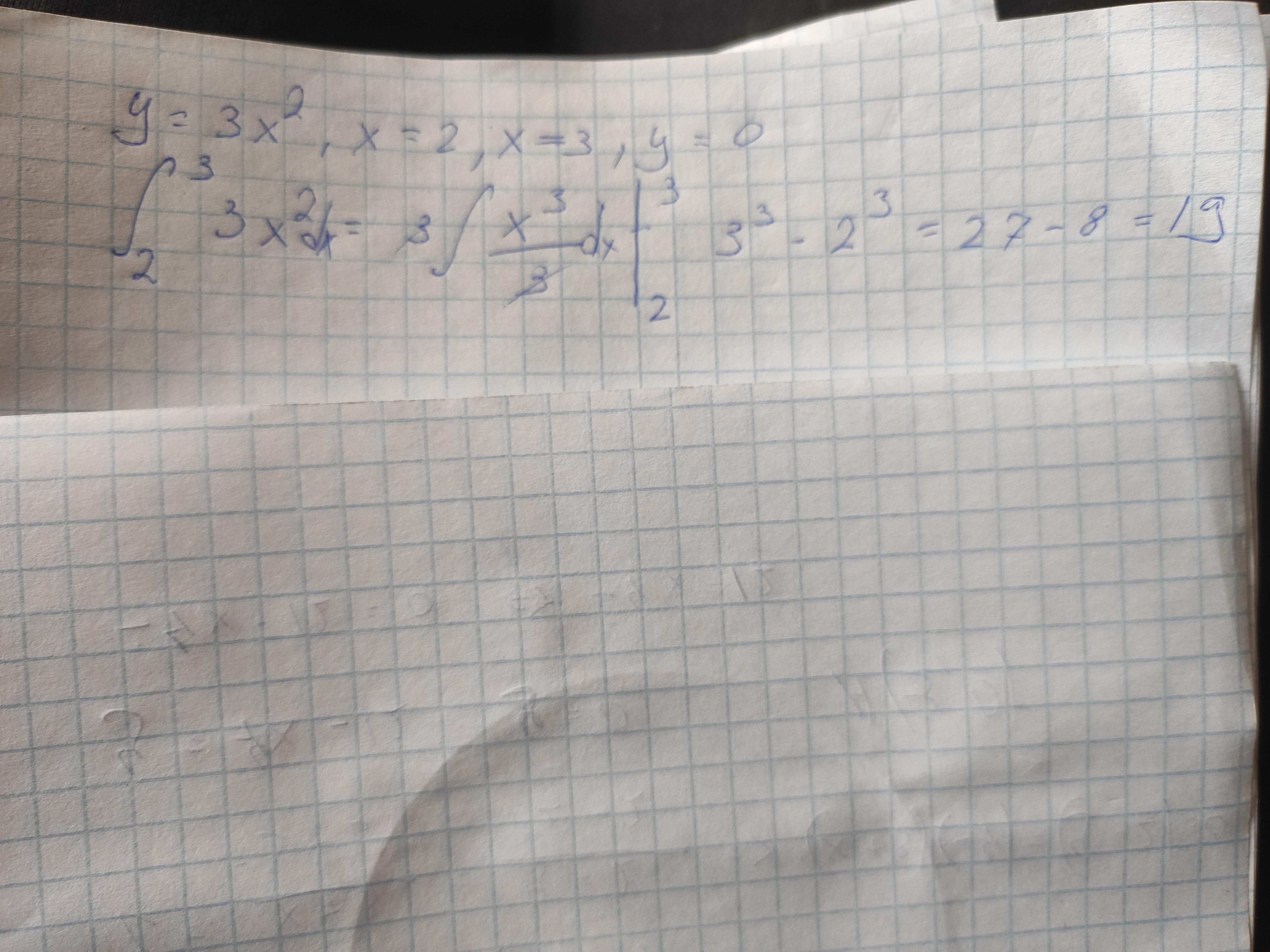 Площадь криволинейной трапеции , ограниченной графиками функций:y=3x^2 , x=2, x=3, y=0 равна : 1)15 2)19 3) 36