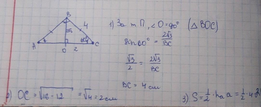 s=1/2*4*2корінь з 3 = 4 корінь з 3.