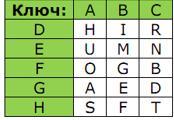 даю 40балловНайдите способ с помощью ключа прочитать слова и запишите их. Ключ внизу смотрим буквы и выписываем букву на пересечении. Каким английским словом можно обобщить все найденные?