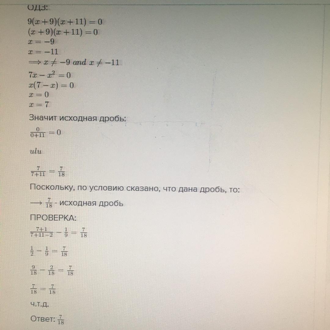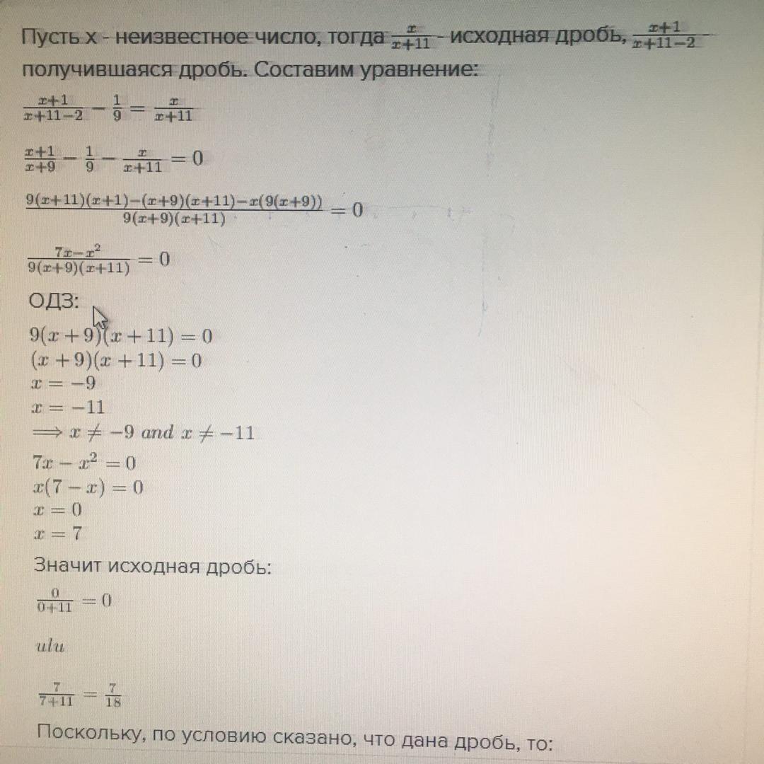 Знаменатель обычной дроби на 11 больше чем числитель. Если числитель дроби увеличить на 1, а знаменатель уменьшить на 2, то полученная дробь на одну девятую больше начальной. Найдите первоначальную дробь