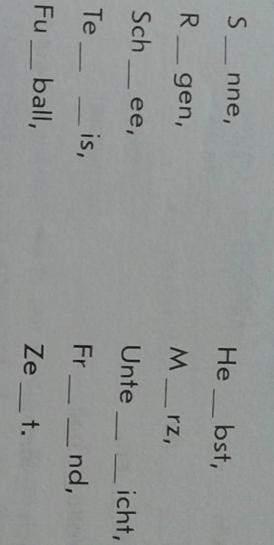 Sonne, Regen, Schnee, Tennis, Fußball, Herbst, März, Unterricht, Freund, Zelt (палатка) или Zeit (время)