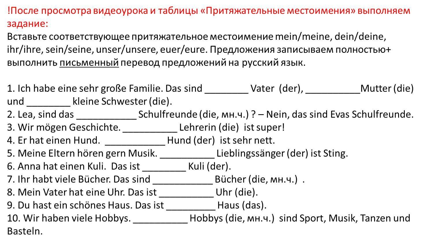 1. mein Vater, meine Mutter, meine kleine Schwester