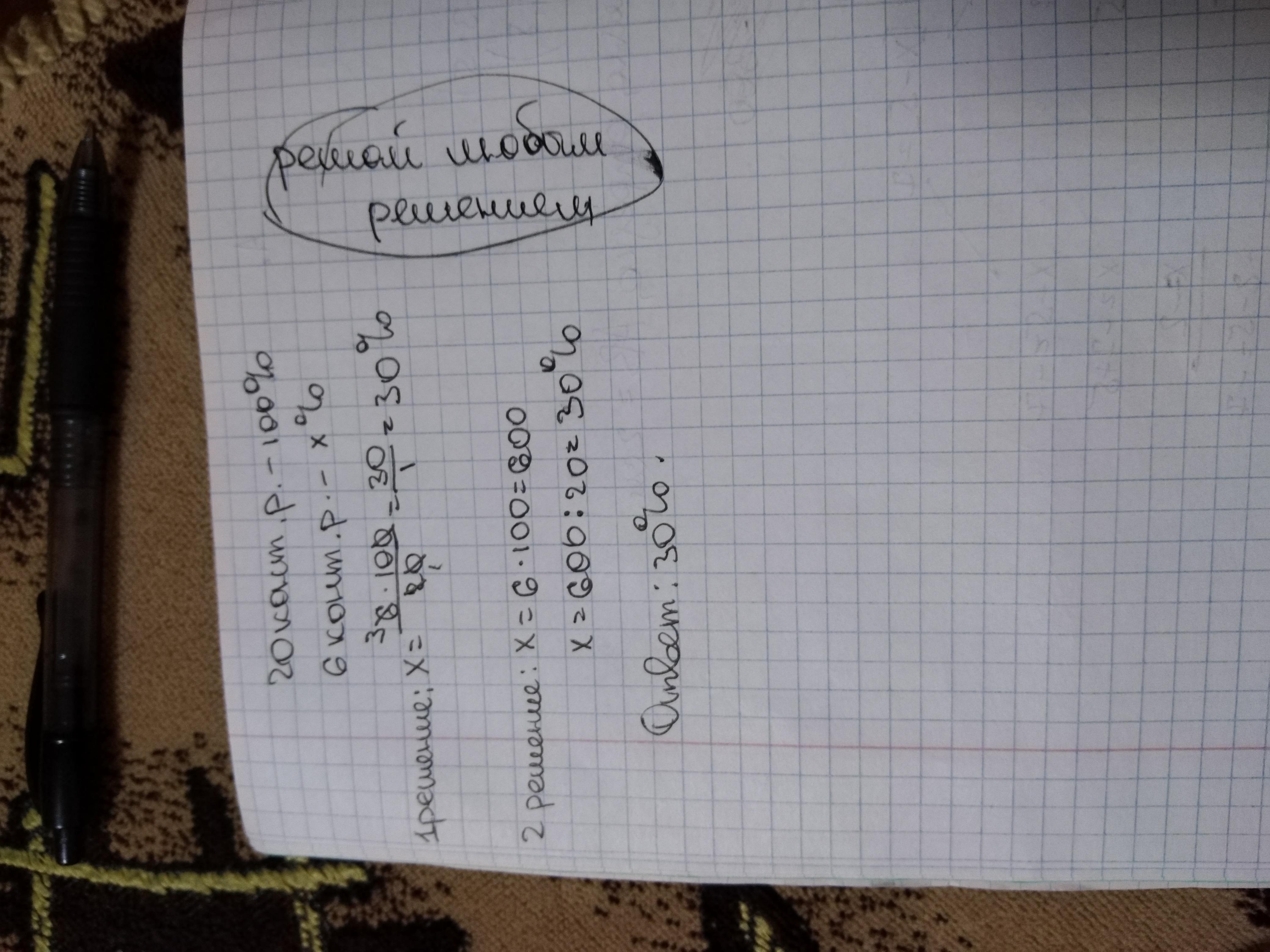Из проверенных 20 контрольных работ по математике 6 работ оценили на «5». Сколько процентов составляют эти работы от общего числа проверенных работ?