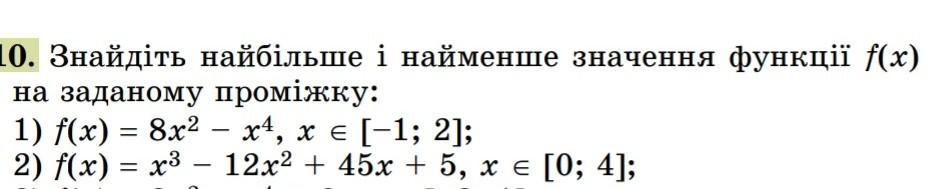 1) находим производную, f'(x)=16x-4x^3, 16x-4x^3=0, 4x(4-x^2)=0,