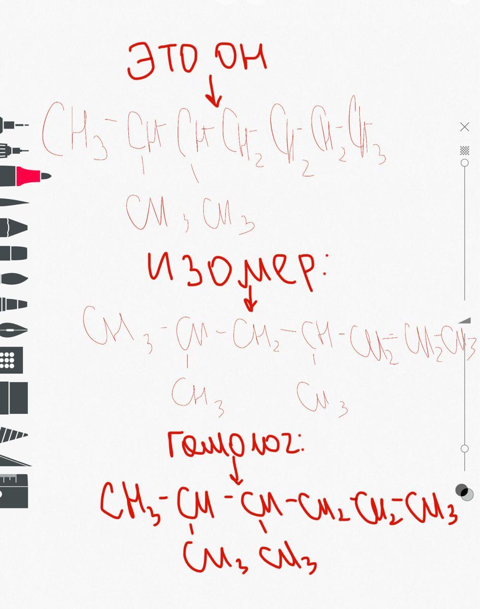 Название изомера-2,,4-диметилгептан, гомолог-2,3-диметилгексан