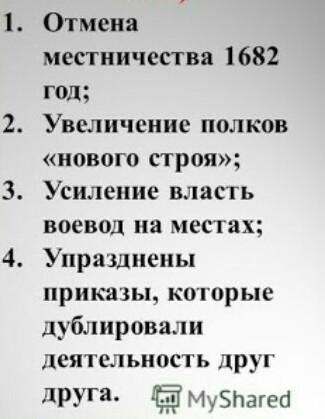 4. Какая реформа была проведена в 1682 г.? Содержание.