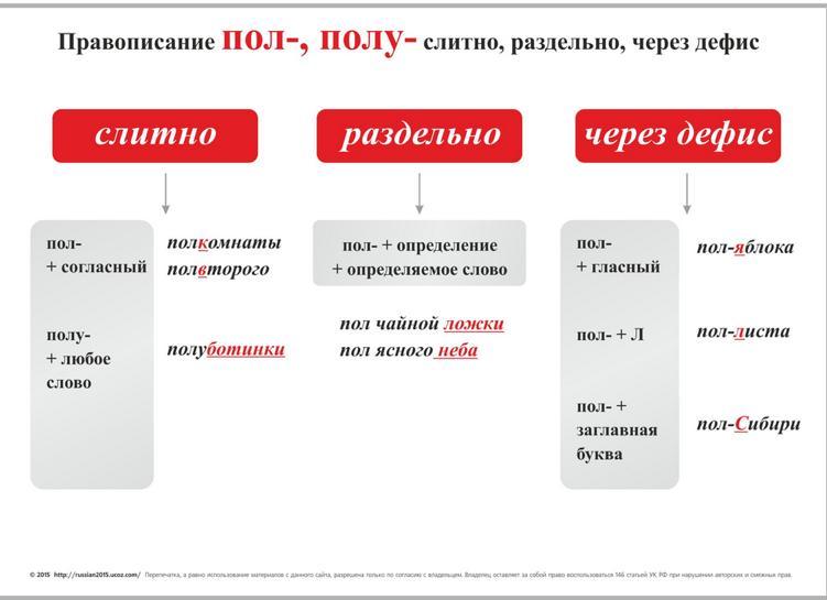 Очень хорошее правило, в котором грамотно изложено правописание пол- и полу- с различными словами