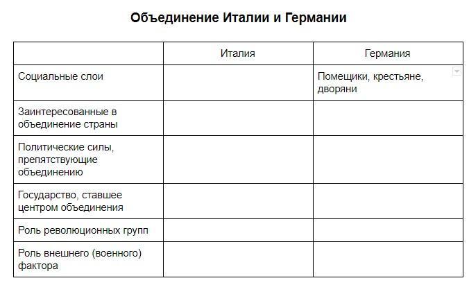 Сравнительная таблица Италия и Германия