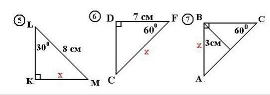 5) катет навпроти кута 30° дорівнює половині гіпотенузи