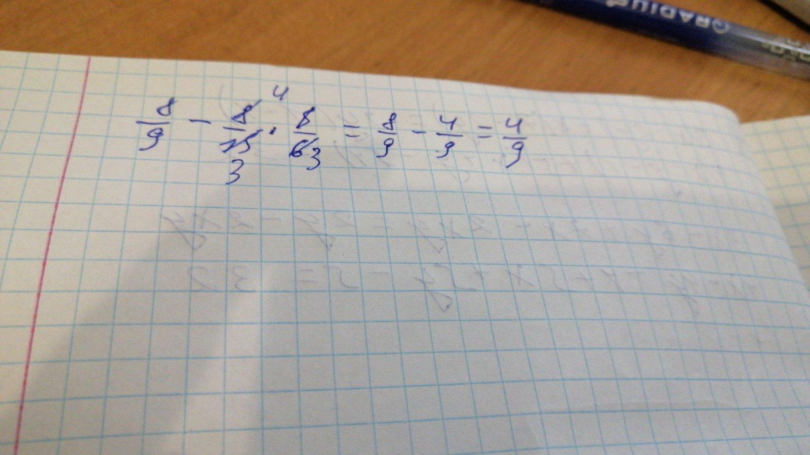 восемь девятых минус восемь пятнадцатых умножить на пять шестых. Ответ запишите в виде несократимой дроби.