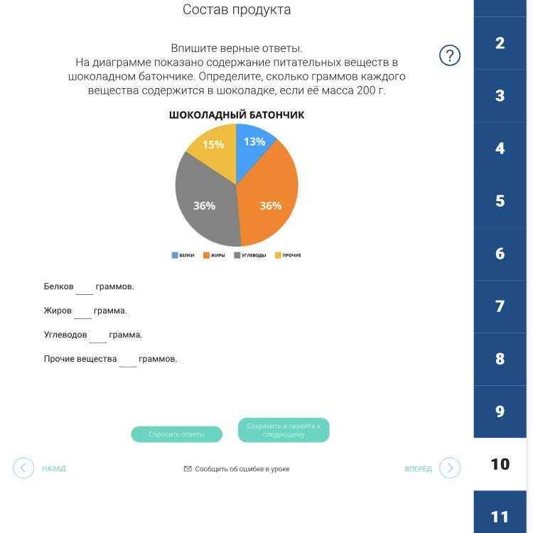 2. 200 * 13/100 = 26 гр. – белка;