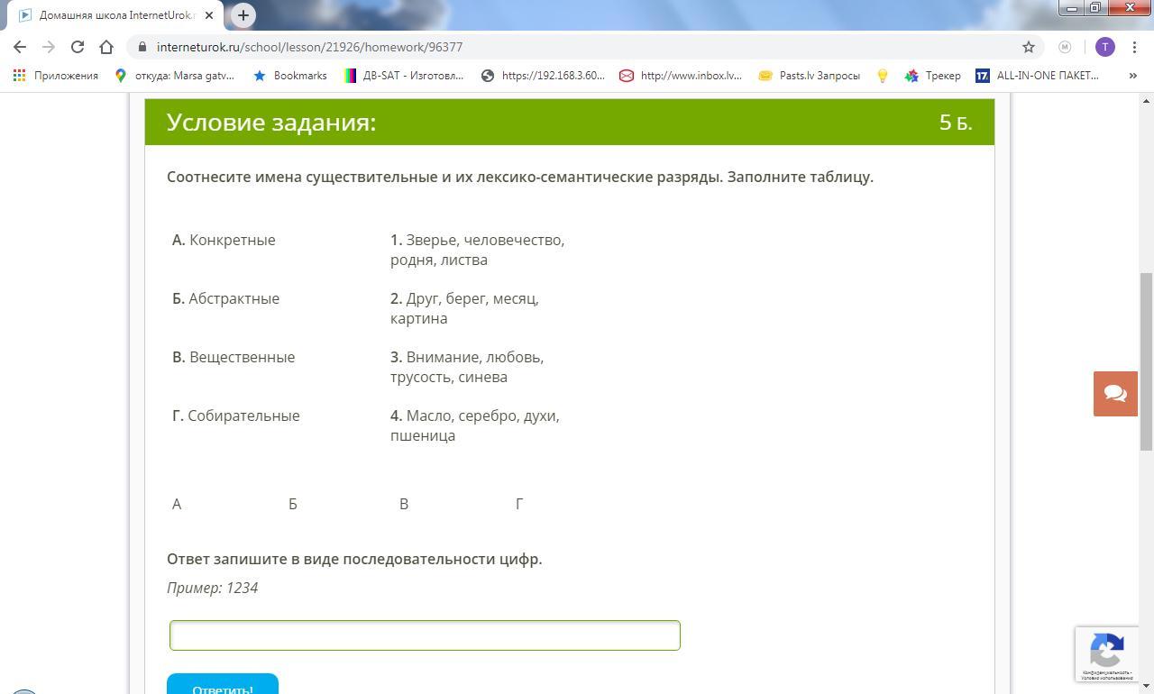 Соотнесите имена существительные и их лексико-семантические разряды. Заполните таблицу.