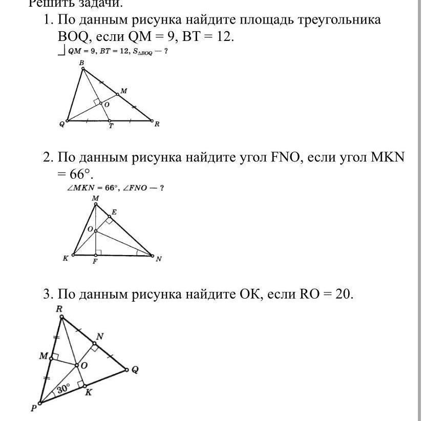 QO=2/3*QM=2/3*9=6, тр-к BQO- прямоуг-й, S=1/2*BO*OQ=1/2*8*6=24