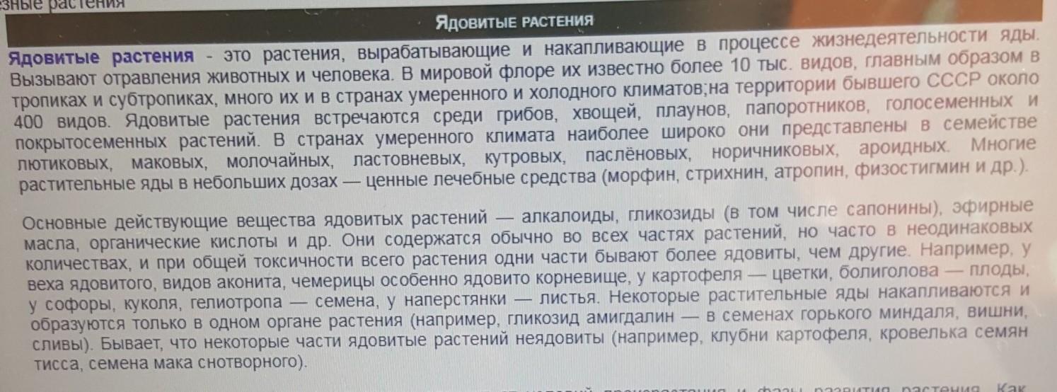 1.Органы растений, какого семейства содержат яд? При каких условиях образуется яд, и в каких органах?