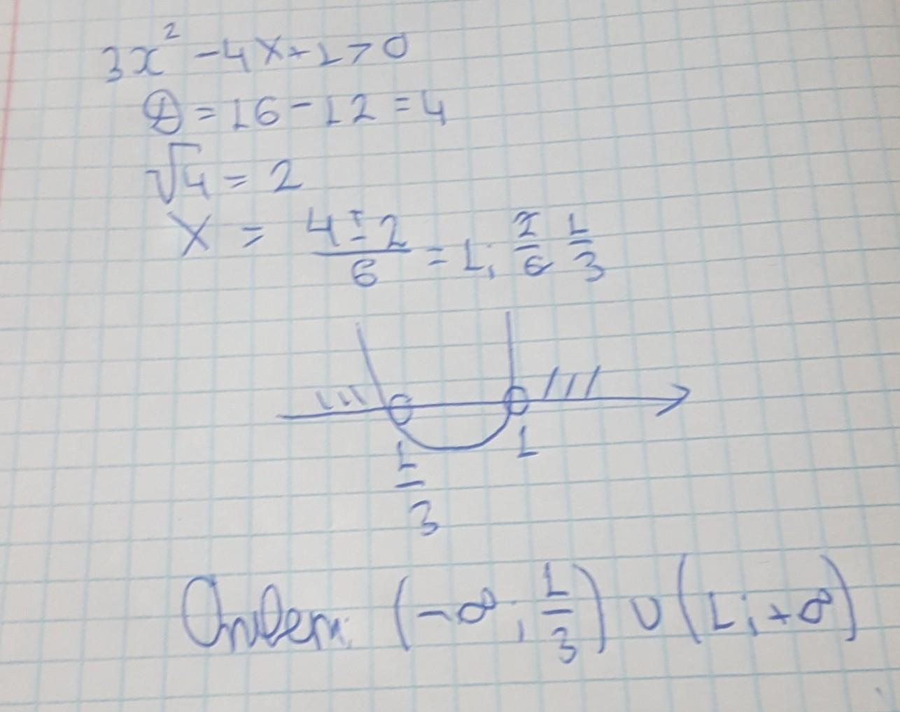 Ответ: (-бесконечность;1/3)u(1;бесконечность+)