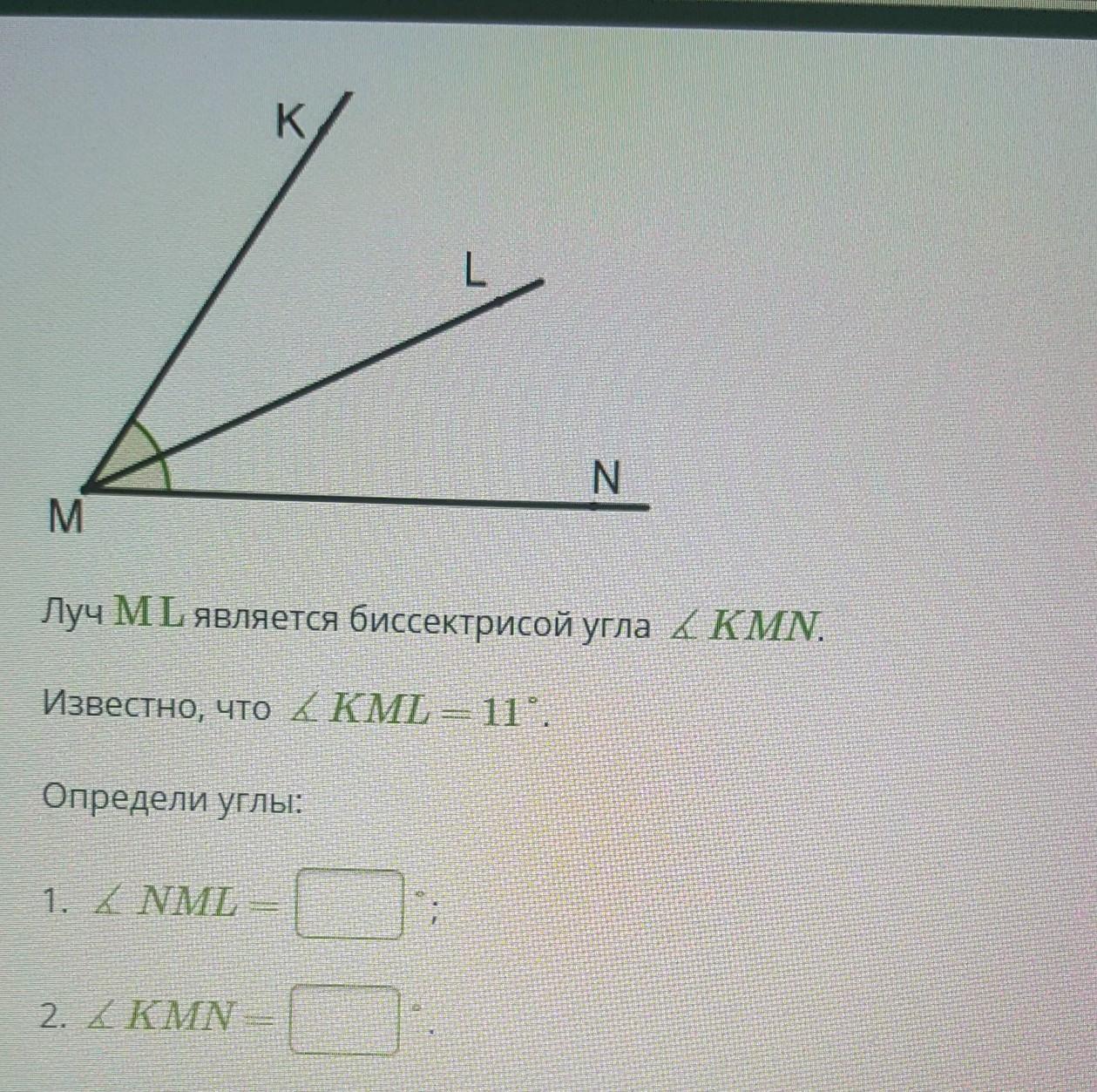 По правилам биссектриса делит угол на две ровные части, значит угол ∠KML = ∠NML, а значит ∠NML = 11°.