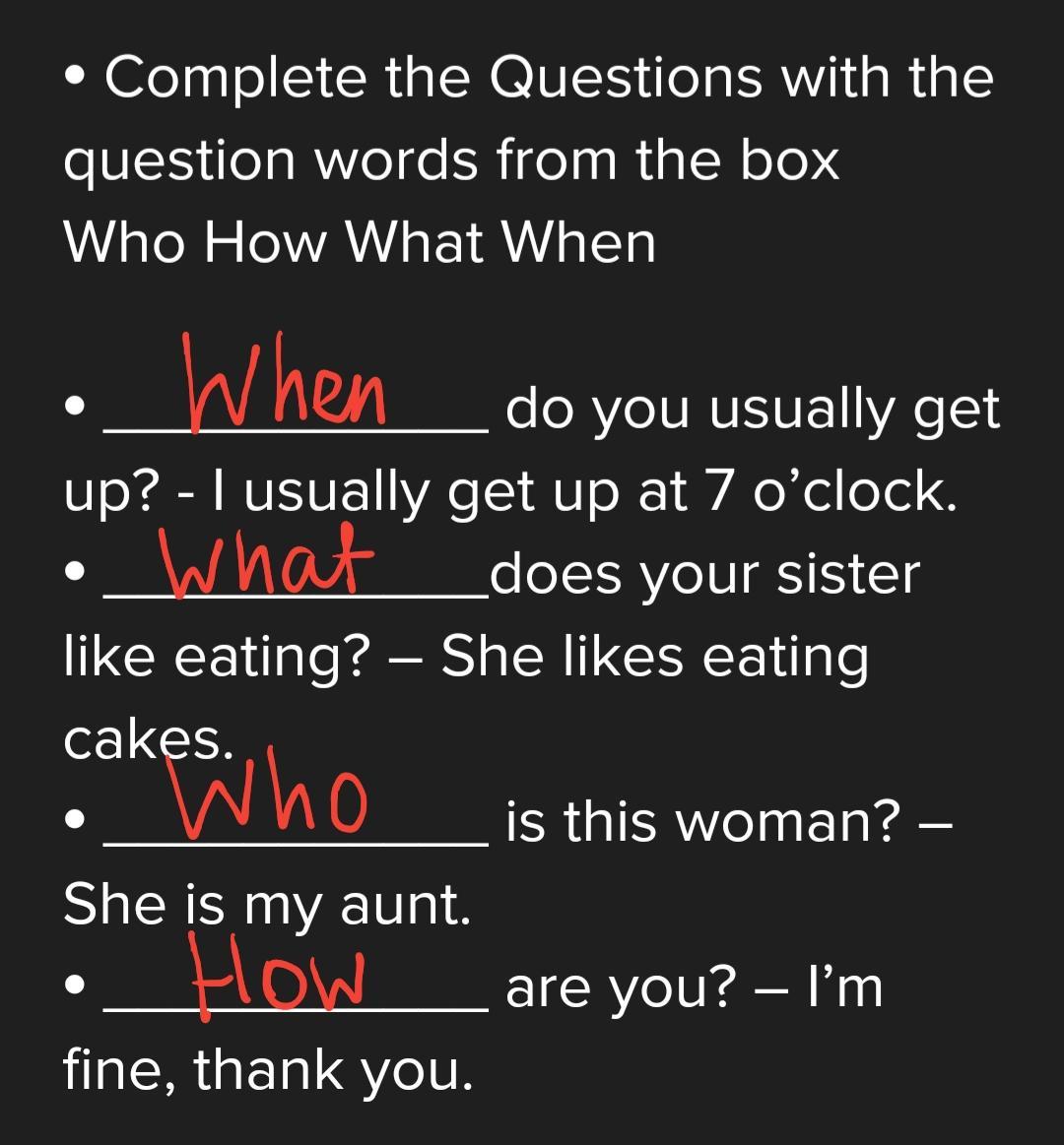 ⦁ ___________ do you usually get up? - I usually get up at 7 o’clock.