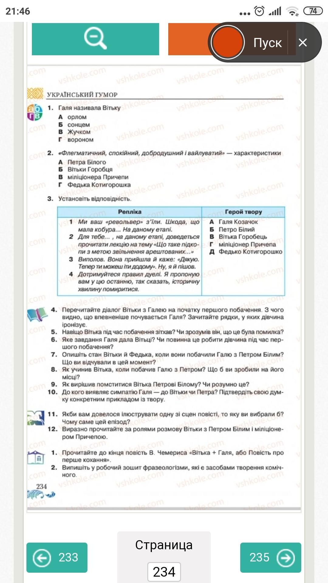 10. Галя виявляє симпатію до Вітьки цитата - Галя трохи постояла на місці, роздумливо мнучи газету, а потім наздогнала Федька і заторохтіла, ласкаво зазираючи йому у вічі: