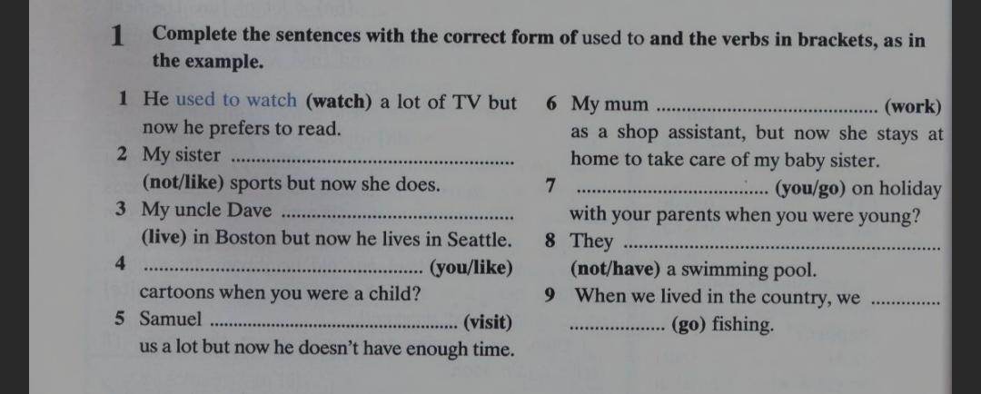 6. My mum used to work as a shop assistant, but now she stays at home to take care of my basy sister.