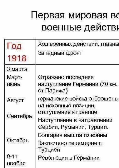 Срочно спасайте друзья таблица" россия в первой мировой войне" : годы, военные действия, основные итоги.