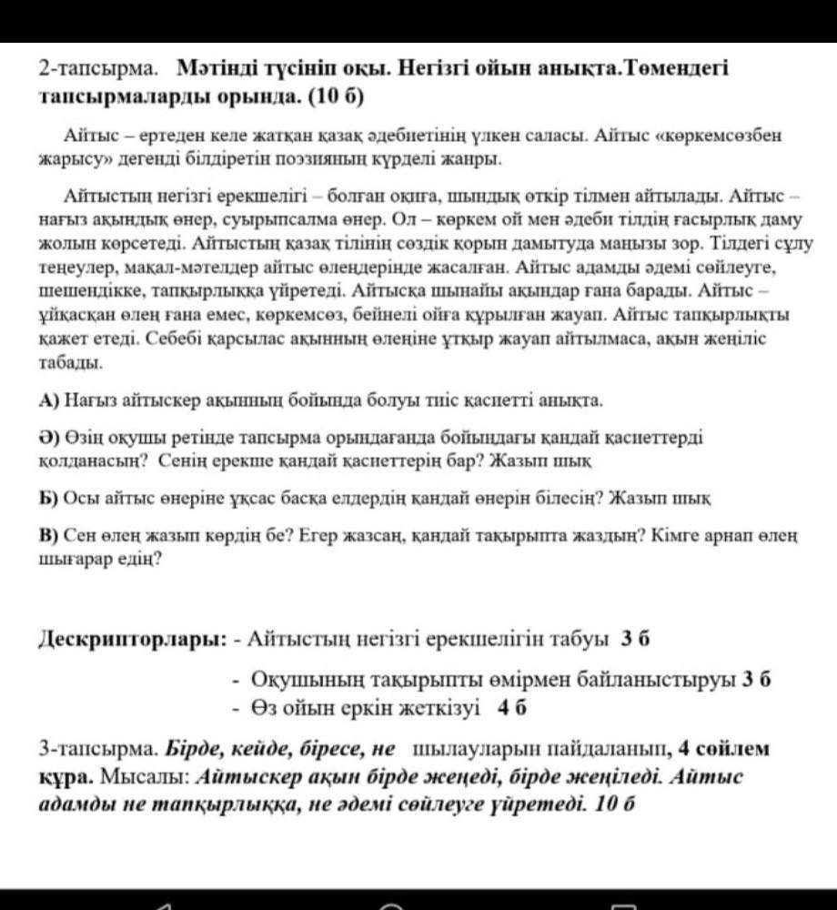 ә)тапсырма орындағанда ең алдымен мен көркем сөздерді қолдануға тырысамын.Ерекше қасиеттерім:жақсы,көркем сөйлеу деп ойлаймын.