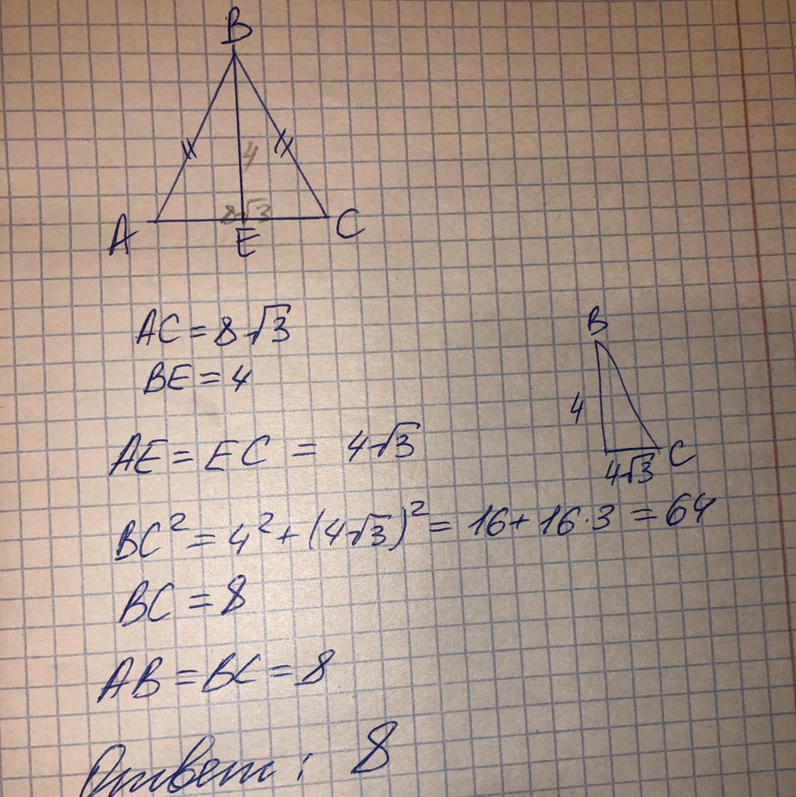 Треугольник AEB: угол AEB = 90 градусов, по теореме Пифагора:
