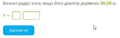 Радіус - це половина діаметру. Тоді, r = 30,04 ÷ 2 = 15,02 м