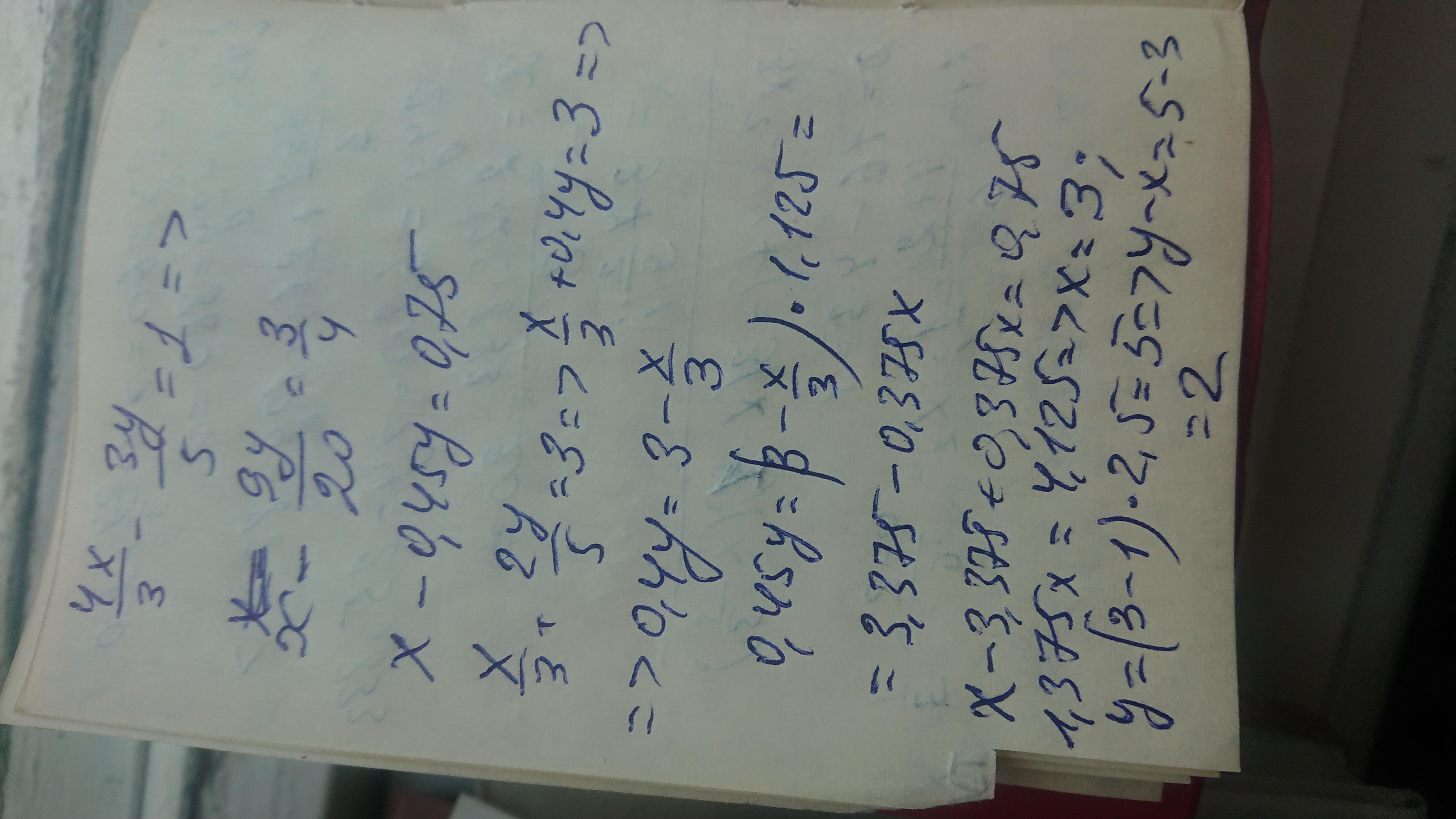 найдите разность y-x, если пара чисел (x,y), является решением системы уравнения {x/3+2y/5=3 4x/3-3y/5=1