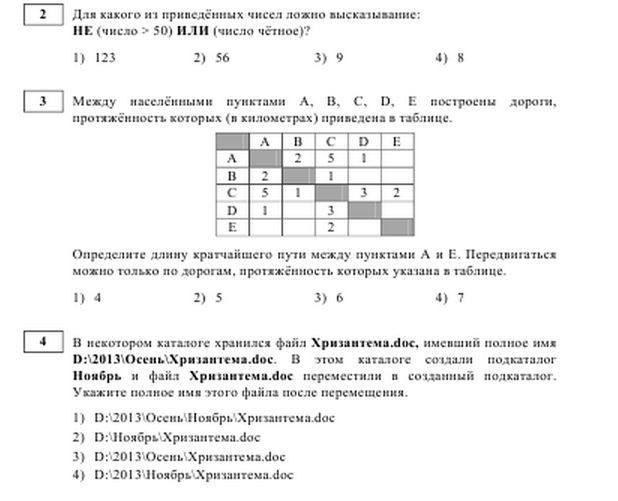 Задание 2 Числа в клетках означают расстояния между пунктами. Берем во внимания только значения над диагональю. Всего таких шесть. Например, число 2 в первой строке на пересечении А и В это расстояние между пунктами А и В,где клетки пустые между этими пунктами нет дороги.