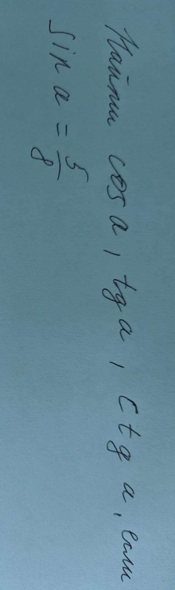 Найти cos a, tg a, ctg a, если sin a= 5/8​