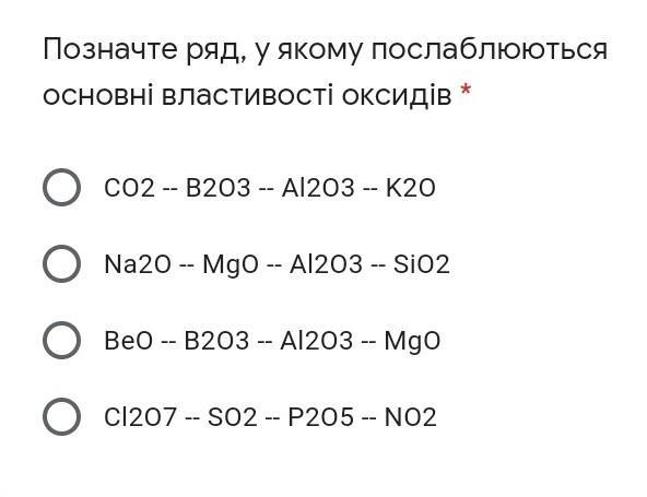 позначте ряд, у якомі послаблюються осговні властивості оксидів ​