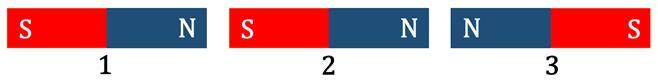 магниты 1 и 2 притягиваются, магниты 1 и 3 и магниты 2 и 3 отталкиваются