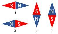 Ответ: 9-магниты 1 и 2 притягиваются 1 и 3, 2 и 3 отталкиваются