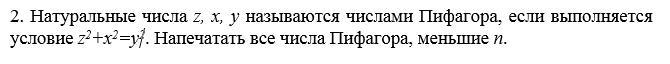if z*z+x*x==y*y: print("z = ","%2d"%z," x = ","%2d"%x," y = ","%2d"%y)
