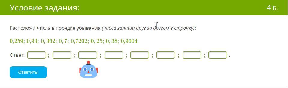 0,93; 0,9004; 0,7202; 0,7; 0,38; 0,362; 0,259; 0,25.