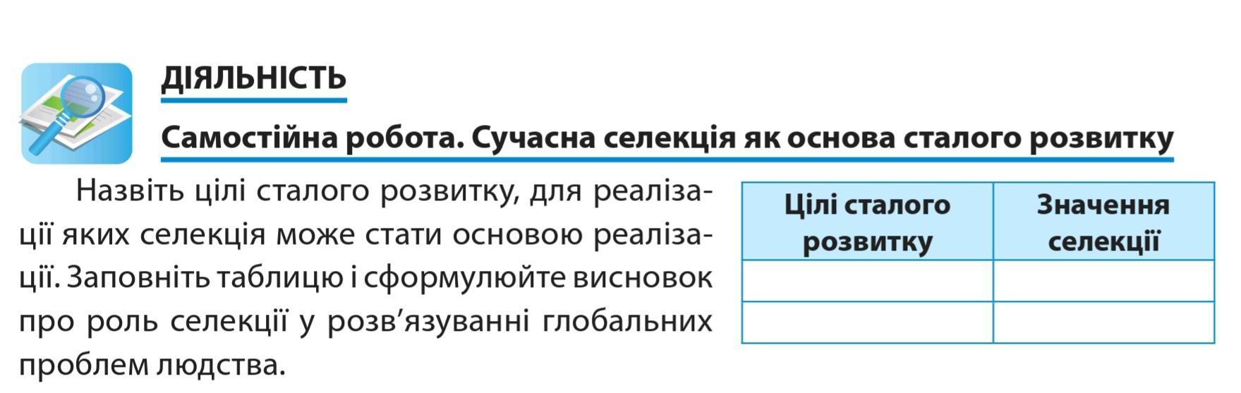 Самостійна робота. Сучасна селекція як основа сталого розвитку