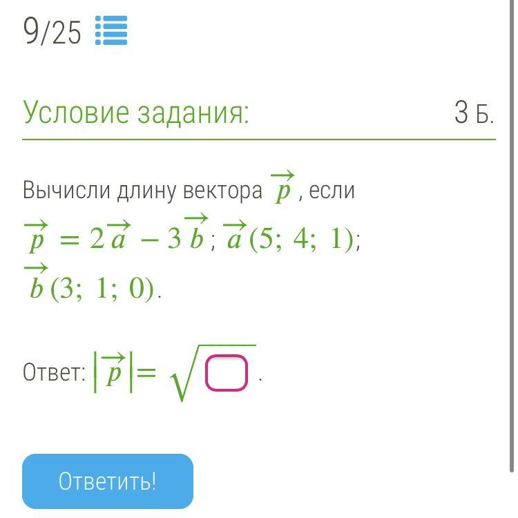 Вычисли длину вектора если p=2а-3b