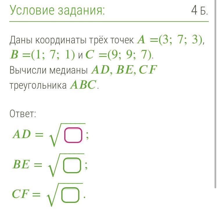 Даны координаты трёх точек A=(3;7;3)