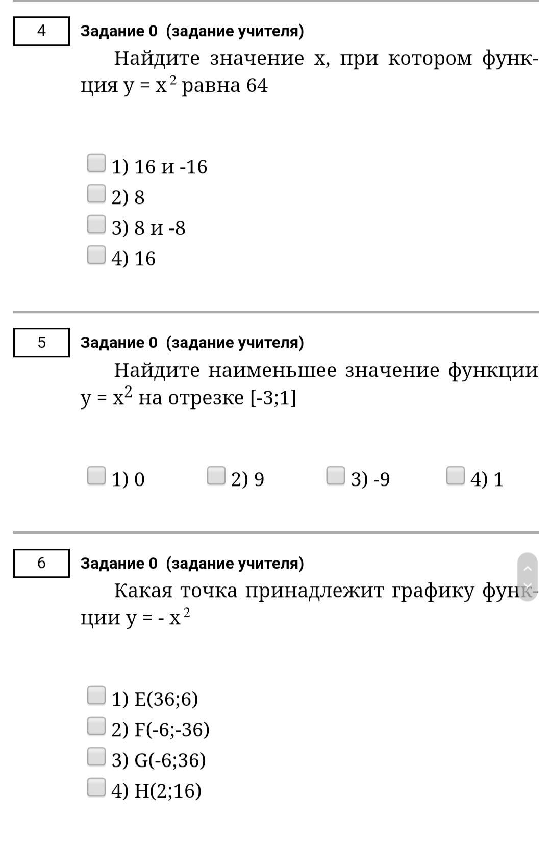 отмечаем заданные нам точки и смотрим какая именно попадёт на линию параболы