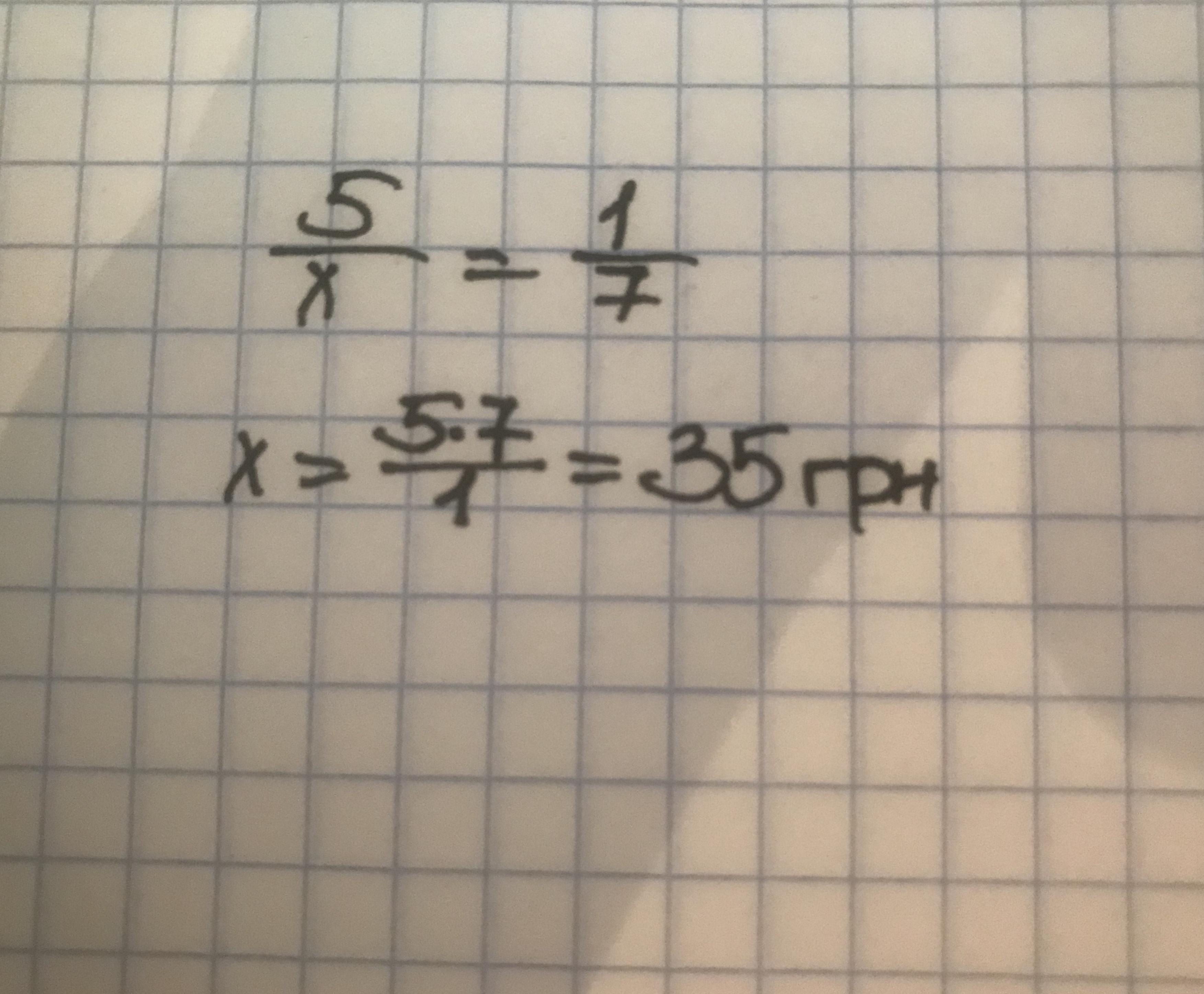 Петрик заплатив за морозиво 5 грн.це становыло одна сьома всих грошей яки вин мав.скильки грошей було у петрика