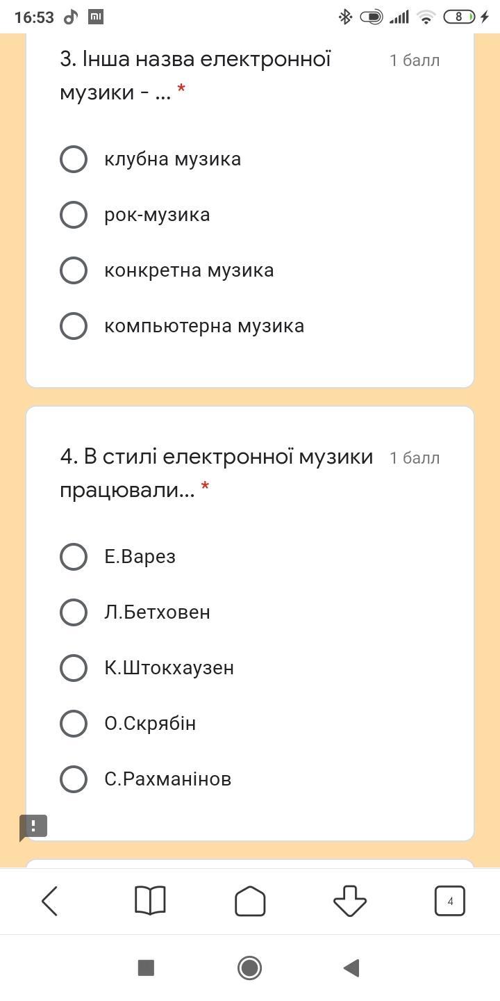 1.а 3.рок 4.бетховен 5.Электрогитара 6.ХХIст. 7.Штокхаузен 8.есть