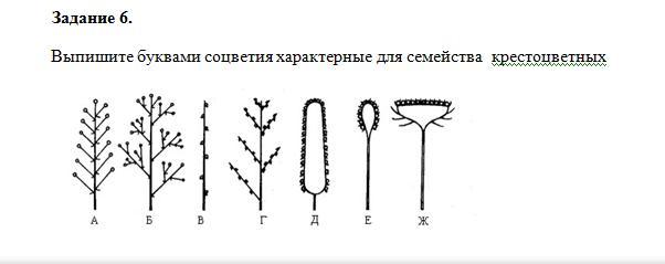 Выпишите буквами соцветия характерные для семейства крестоцветных
