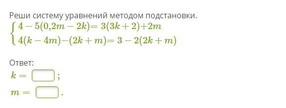 {4−5(0,2m−2k)=3(3k+2)+2m4(k−4m)−(2k+m)=3−2(2k+m)