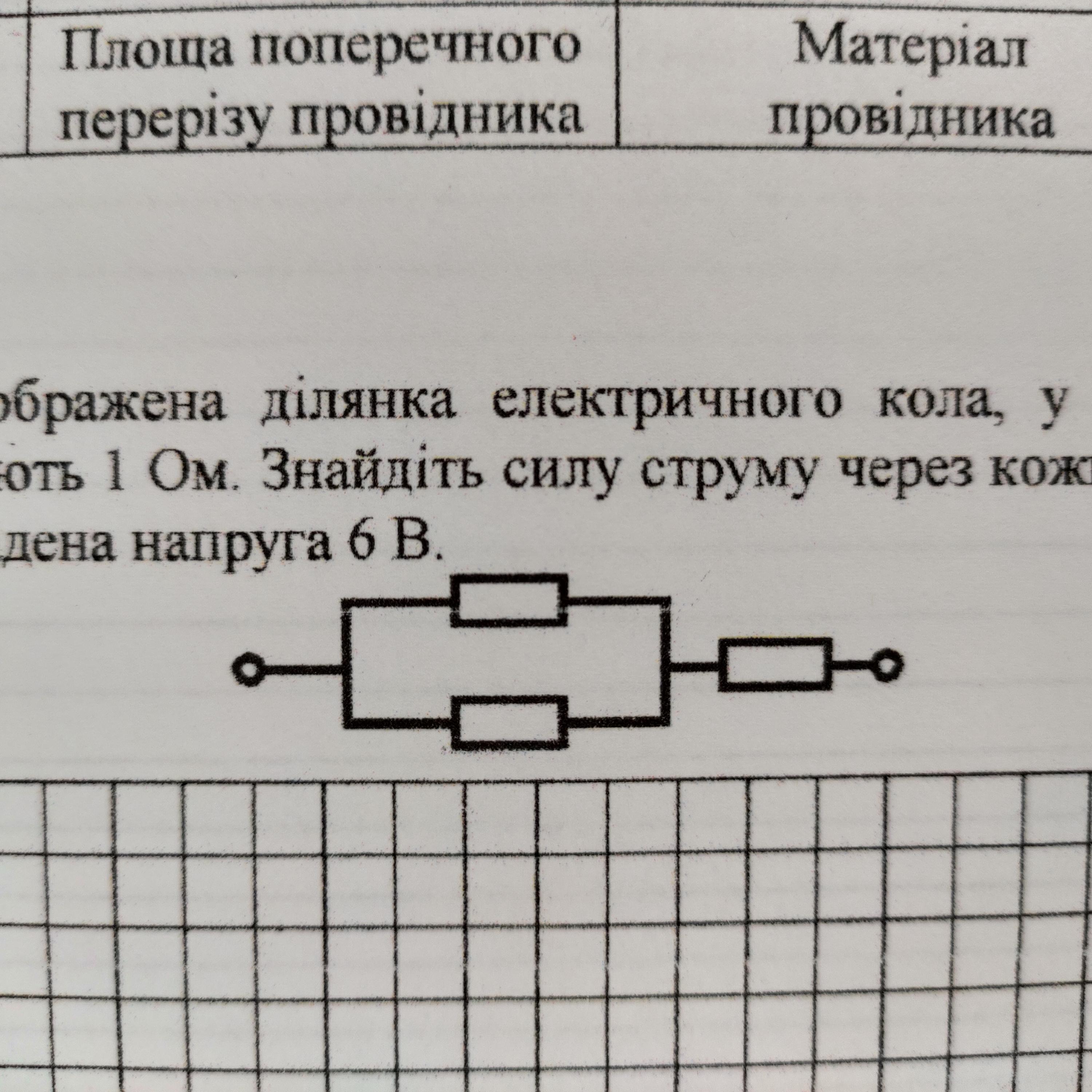 На рисунке изображен участок электрической цепи, в которой опоры всех резисторов одинаковы и равны 1 ом. Найдите силу тока через каждый резистор, если к концам этого участка приложенное напряжение 6 в