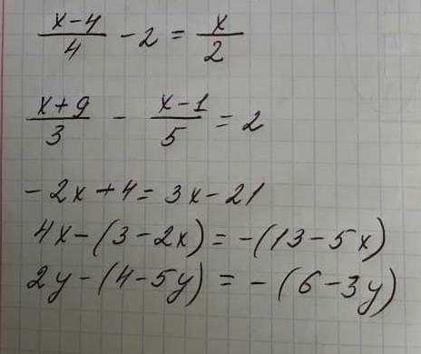 1) (x-4)÷4-2=x÷2 Умножаем обе части на 4.