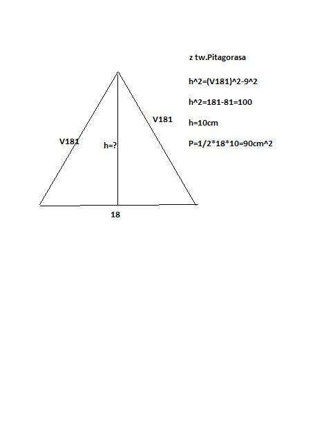корень из 181. основа 18 см обчисліть площу даного трикутника