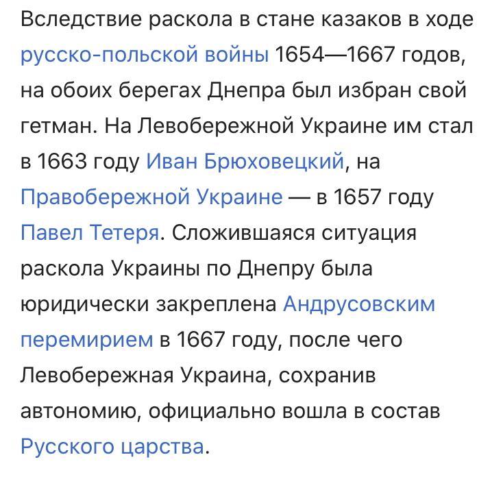 Окончательно административно-политическое разделение Украины на Правобережную Украину и Левобережную Украину произошло в 1663 году, когда на обоих берегах Днепра были выбраны свои гетманы