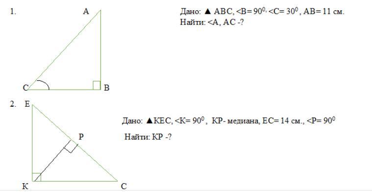 Так как катет АВ лежит напротив угла С, который =30°, то АВ= половине гипотенузы, значит гипотенуза АС в 2 раза больше АВ, из этого следует что АС= 11×2=22(см). Итак: АС=22см; угол А=60°